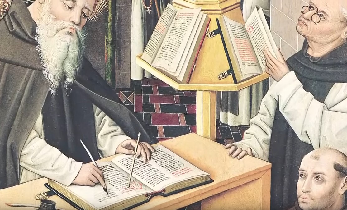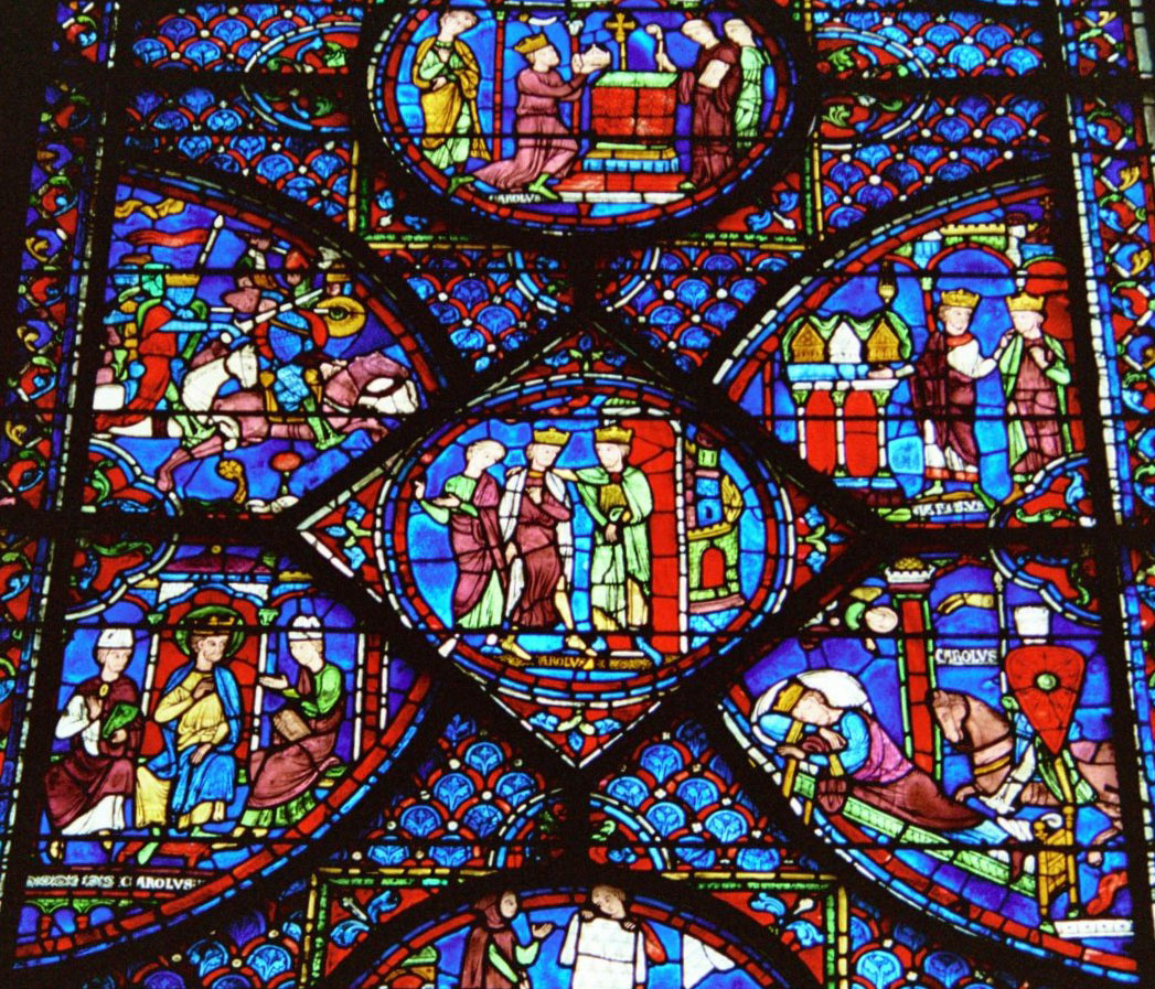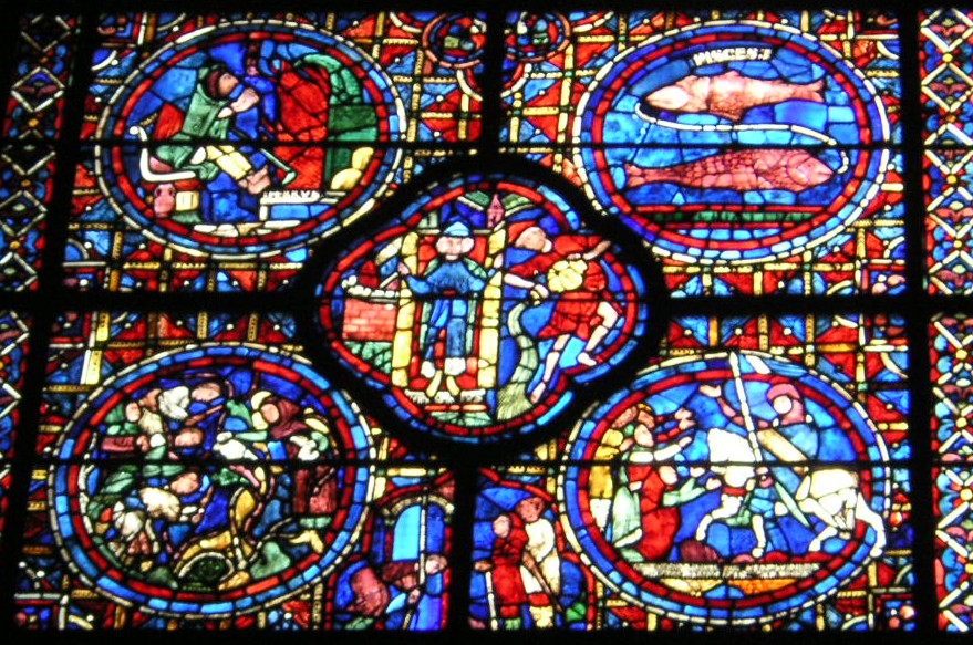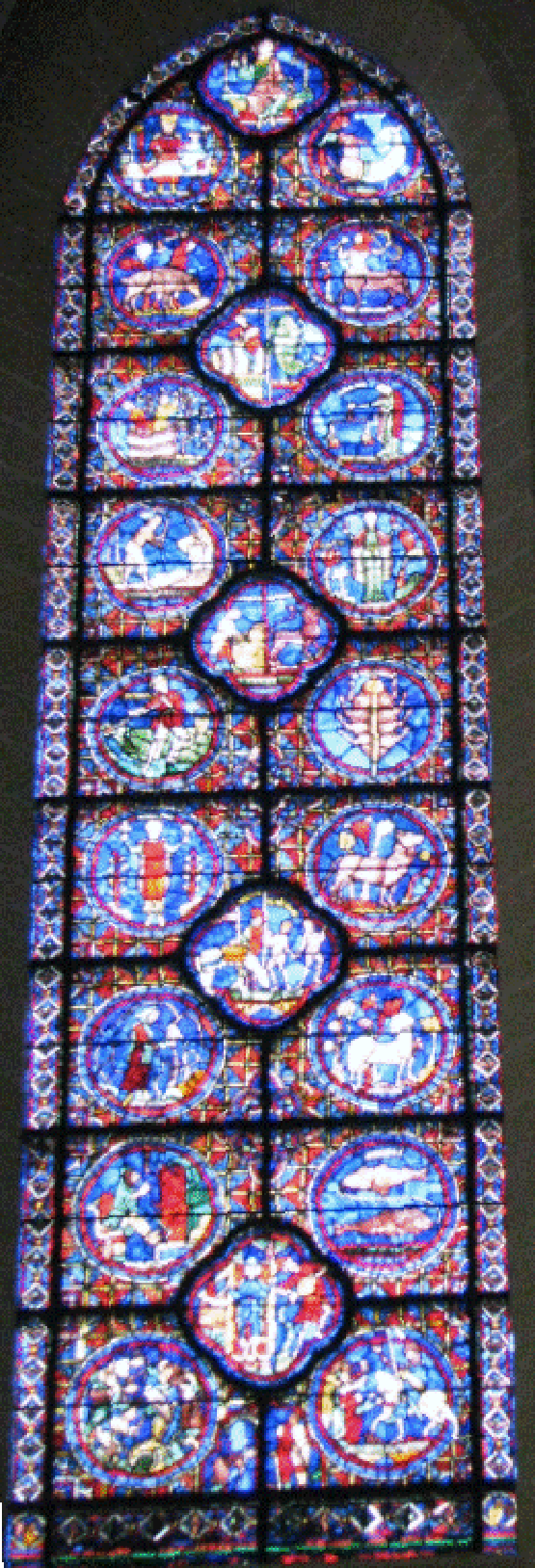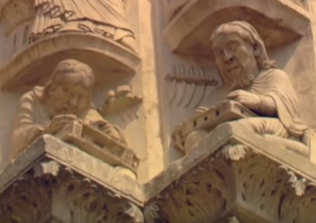 The didactic tone of the monks, in this foremost center of learning, studying the works of Plato, Aristotle, Euclides, Ptolemeus, was later specifically expressed by the builder-initiates in their designs and in the program selected for the creation of the glass and the sculptures, such as botanically accurate leaves and flowers. Religion and science achieved a harmonious balance in the service of God.