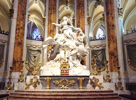Its last narrow escape from total destruction occurred in 1836, when a fire destroyed the roof timbers and melted the lead. The timbers over the nave were replaced by an iron structure and then roofed over with copper. The original unique and healing 'chartres blue' stained glass can still be felt and admired, especially in the robe of 'Notre Dame' Mary.