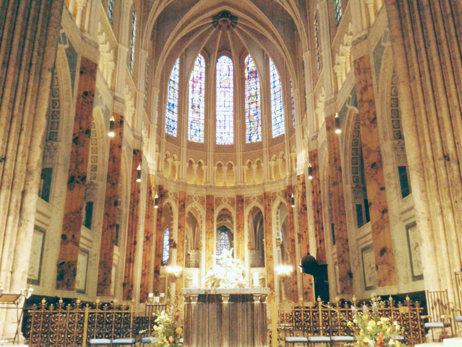 What was thrilling architecturally about this Cathedral was the clerestory, the upper area of the wall supported on the arcades, which took the form of a huge glass casket in which the architecture merely serves as a frame for the stained glass filling the two rows of enormous windows.