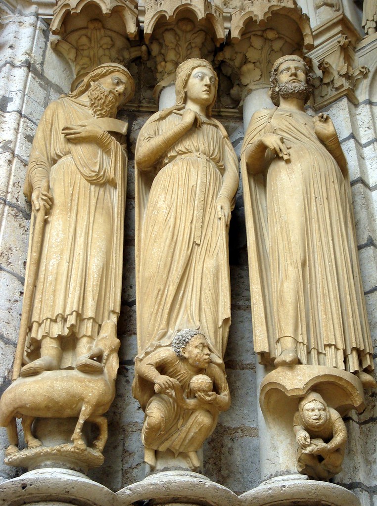 The program was given expression in the sculptures on the West side's Royal Portal of 1150-1175, and on the 2 immense transepts that were added on the north and south facades.