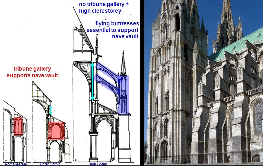 To provide stability for the daring construction, but also significantly increase space everywhere inside, immense flying buttresses were used in an unprecedented way: