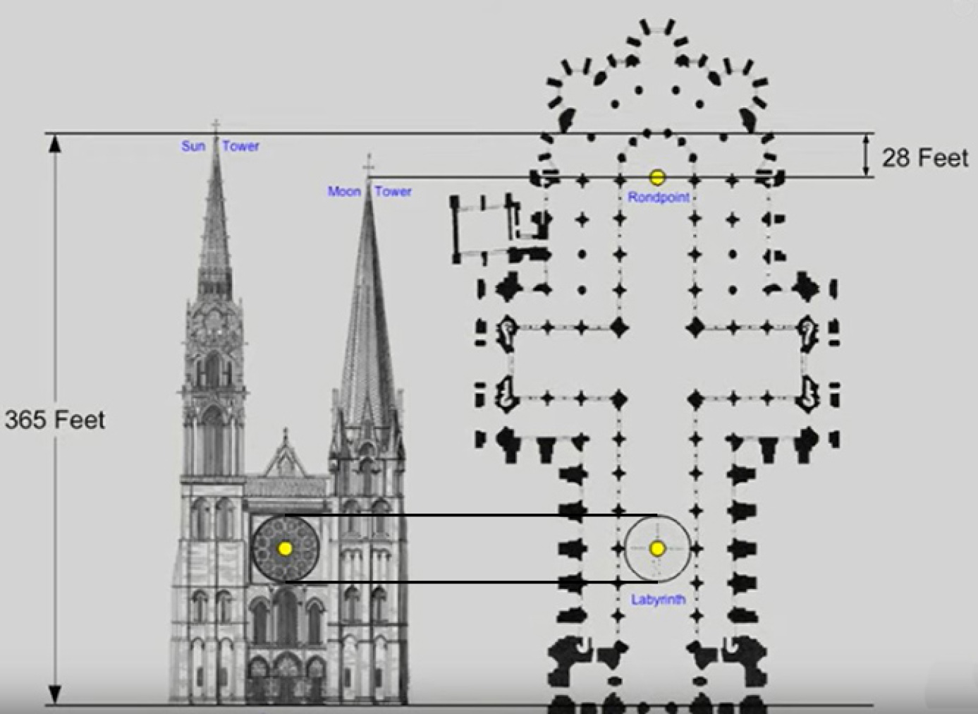 The Apse and the Labyrinth have the same diameter and thus the same multi-dimensional transcendental Pi (π) factor, thus creating a coherent resonance with their cosmic counterpart.