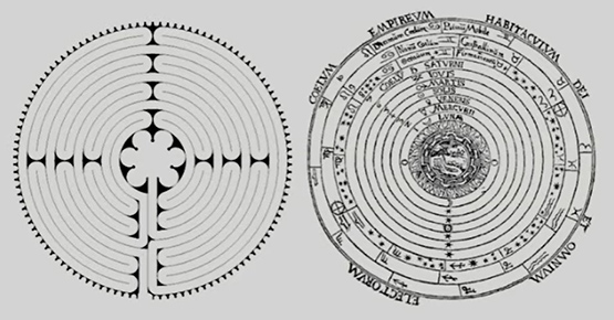 Labyrinth versus Ptolemeus' Wheel of the Cosmos: