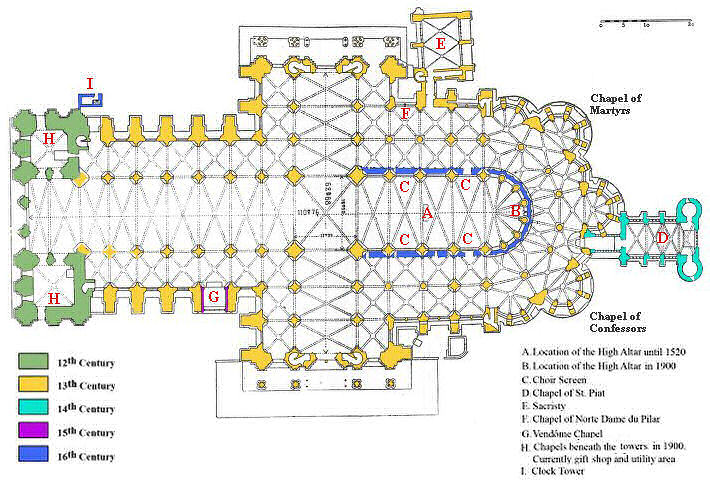 This Cathedral is a milestone in the development of Western architecture because it employs all the structural elements of the new Gothic architecture: the pointed arch; the particular rib-&-panel vault; and, most significantly, the flying buttress.
