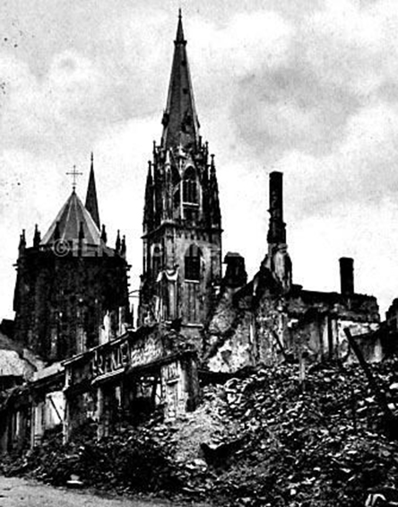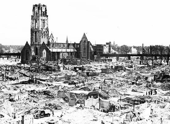 Cathedral of Rotterdam after destruction of heart of town in 1940