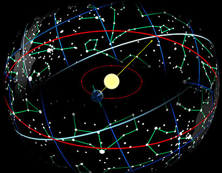 Encircling the sun earthy humans observe all 12 zodiac constellations