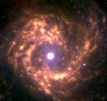 This quasar has an energetic and distant active galactic nucleus, or quasi-stellar radio source, and the brightest and most luminous quasar in the sky. It is ‘only’ 2.443 giga-Lyrs away. It is classified as a blazar, a very compact quasar associated with a suspected super-massive black hole at the center of an active giant elliptical galaxy.