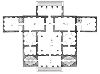 Let us now look at the central core of Villa Cornaro. In 1570 Palladio published the floor plan as part of Plate 36, Book II, of his Four Books of Architecture.