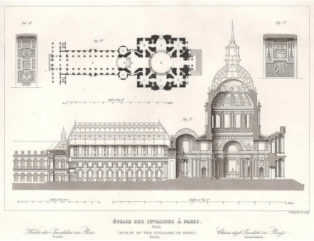 St-Louis-Cathedral is the seat of the bishop of the French Armed Forces, next to the 90m high Dome des Invalides, in a 4D hyper-cube layout.