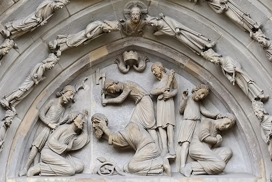 In the late Middle Ages, the city of Bourges was connected with sodomy, and calling someone “from Bourges” meant that this person had homosexual preferences. Considered a sin, we find hints on this subject in the cathedral’s tympanum, depicting the Last Judgement (13th c.).