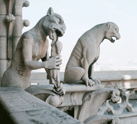There were the bristling monsters, of grotesques comic figures, masks, menacing dragons, gargoyles, vampires and tarasques, together forming the secular guardians of an ancient patrimony.