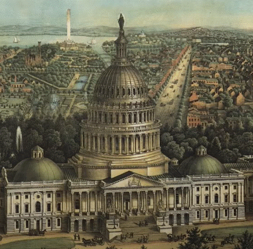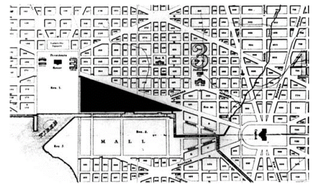 By 1909, the above energetic "blessings" were lost, because the Treasury Building now blocks an unimpeded view between the Capitol and the White House, whose further view westwards is now obstructed by the World Bank building.