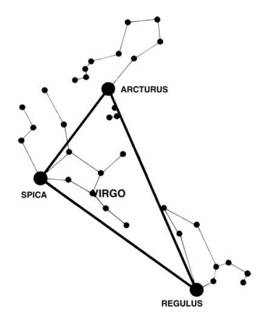 What was the purpose of all this symbolism? Just to lift man’s gaze upward toward the stars and toward Virgo in particular? Are the angles of the Federal Triangle, when subtended into space, somehow energetically linked with the stars and the mythology of Virgo and thus more than a simple reflection on the Earth of the perceived stellar triangle around Virgo?