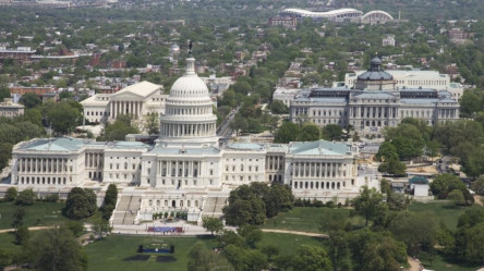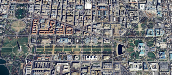 Due to the angle of the ecliptic, this stellar triangle asterism "is projected" onto the earthly Federal Triangle, to the south of Pennsylvania Avenue:
