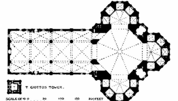 One of the greatest architectural/engineering achievements of the Renaissance, Filippo Brunelleschi’s dome for Florence Cathedral was completed in 1436, and has a diameter of 45 mtrs. Built from brick, the octagonal dome remains the largest masonry dome ever built.