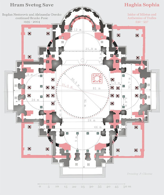 Haghia Sophia size vs dbl-dome St. Sava (Belgrade):