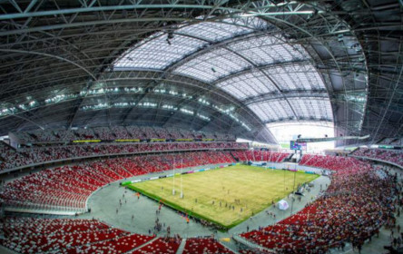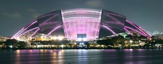 Singapore National Stadium was in 2024 the world's largest dome structure, with 310 mtrs in diameter. The roof of the Dome is retractable. It takes just 20 minutes to close or open. It covers 95% of the seats and is made of revolutionary all-weather resistant materials. It blocks the rain and the heat from the sun. It is also used as a giant projector screen. The lower tier seats are mechanically or automatically retractable. It is the only stadium capable of hosting a multitude of sports and other events. It has a sitting capacity of 55,000 people, with an innovative cooling system underneath the seats, thus consuming 15% less energy than comparable stadiums.