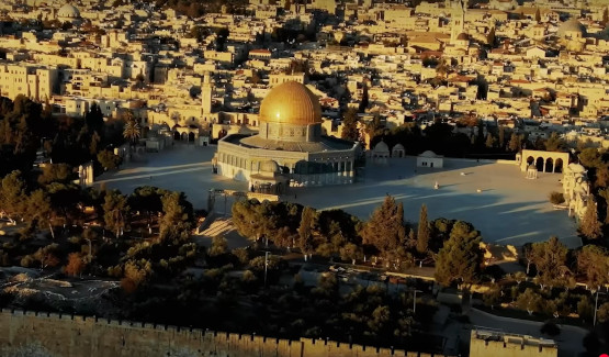 An octagonal building surrounds the Dome of the Rock in Jerusalem, of 20.2 mtrs in diameter and of 20.5 mtrs height. It is built on the site of the 2nd Jewish Temple.