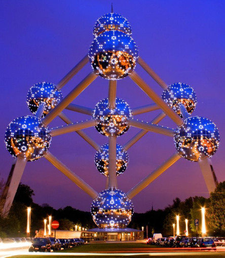 The internal diameter is 42.5 mtrs, with an opening of 8 mtrs at the top. The building itself is a sphere on a cube: