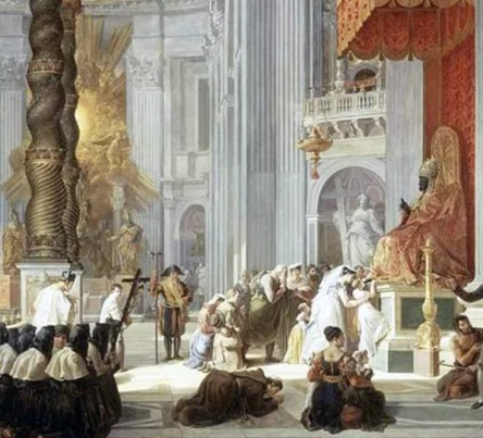 A wooden seat (cathedra) was given by the Holy Roman Emperor Charles the Bald to Pope John VIII in 875 to be used during the Charles’ coronation as emperor at Christmas day in the old St. Peter’s Basilica. A depiction of the emperor appears on the crossbeam of the chair.