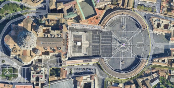 Saint Peter's Square is a large plaza, allowing 300K people, located directly in front of St. Peter's Basilica in Vatican City.