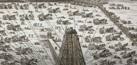 Lowering and transporting the 25 mtr Egyptian Obelisk over 300 mtr, and then erecting it again in 1586, while a new basilica and square was constructed: