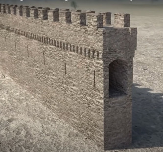 8m. high, 2.5m. thick wall, covered/uncovered passageways,